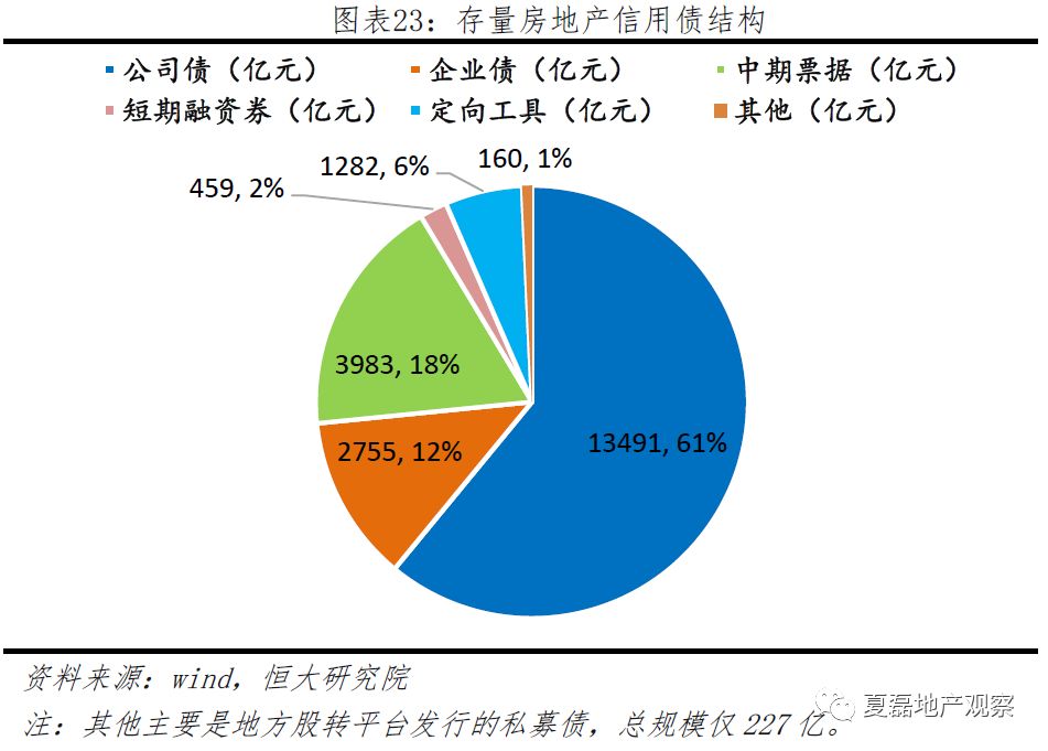 企业债发行主体为国有企业、由发改委监管、可在银行间市场(中债登托管)和交易所(中证登托管)交易;期限3-10年;需公开发行。由于企业债发行主体要求是国企且受发改委严格监管,普通房企较少发行。目前房企企业债存量2755亿,占存量信用债规模12%。