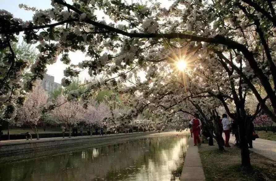 公园有很多景点,较著名的,就是每到春天便美绝京城的海棠花溪,海棠盛开在河边,繁华灿烂,令人沉醉。