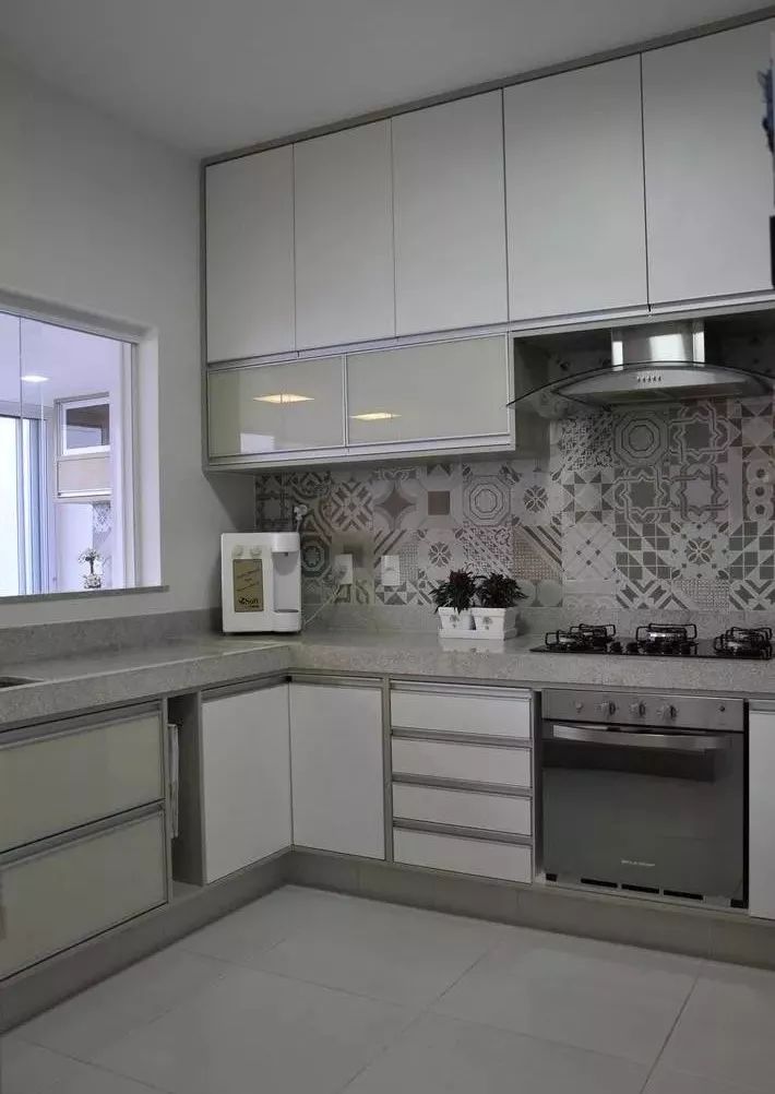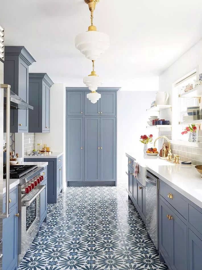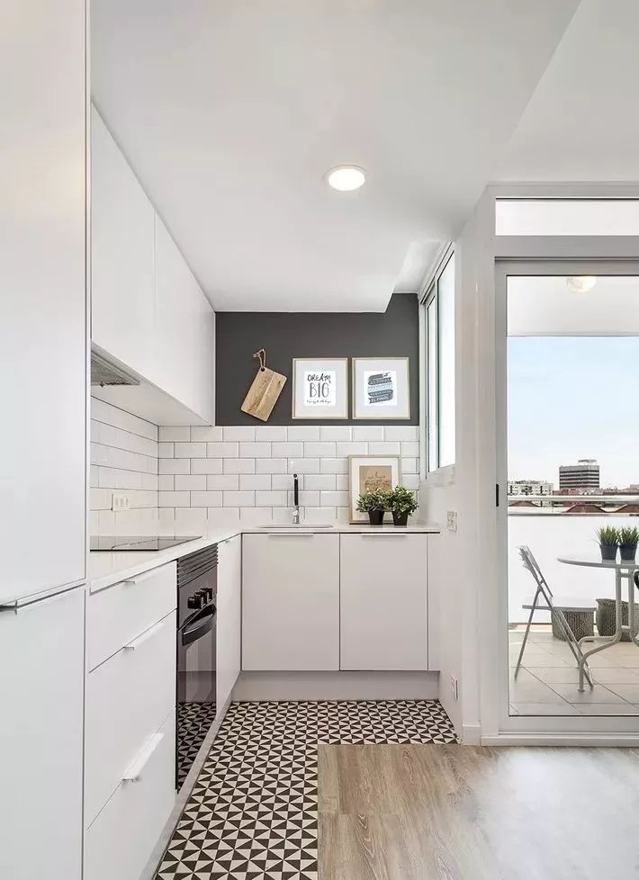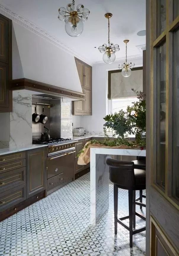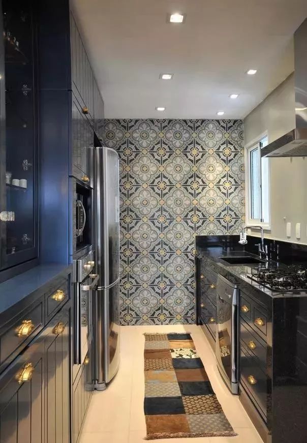 厨房的墙面一般比较单调,实用性远远胜过了装饰性,因而没有太大的亮点。如果用花砖进行装饰,和其他单色砖形成一个视觉上的对比,或许就能轻松打造视觉焦点了。