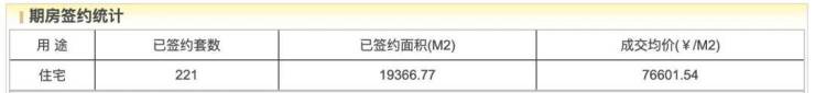 目前网签221套,网签均价7.66万/平米,去化率约68.6%。