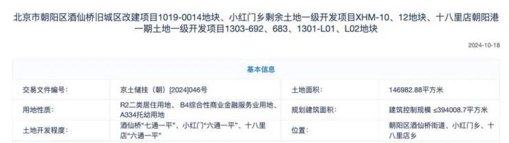 其中一宗朝阳大礼包,涵盖酒仙桥、小红门、十八里店3个板块,一宗丰台新宫。