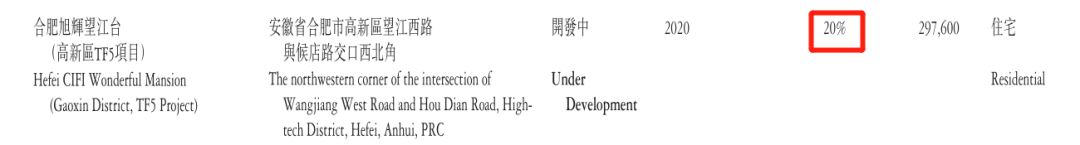 查询年报发现,旭辉有不少项目的应占权益只有20%,个别甚至连20%都不到。