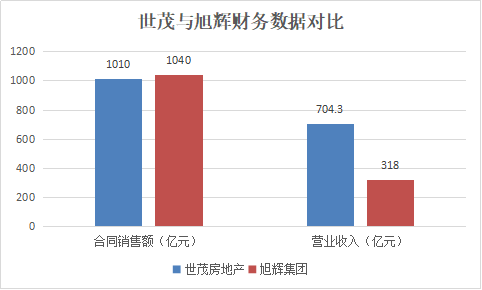 从图中我们可以看到,世茂与旭辉在2017年的销售额几乎一样,但是世茂的营业收入是旭辉的两倍还多。