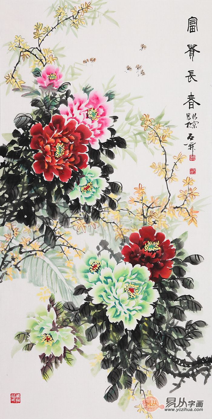 国色天香增富贵,天香一品赐吉祥。牡丹,因寓意富贵,所以一直深受人们的喜爱,又因它花大色艳、香飘十里、雍容华贵,有“天香国色、花中之王”的美称,作为我国的国花当之无愧,更是家中挂画风水所不可缺少的。
