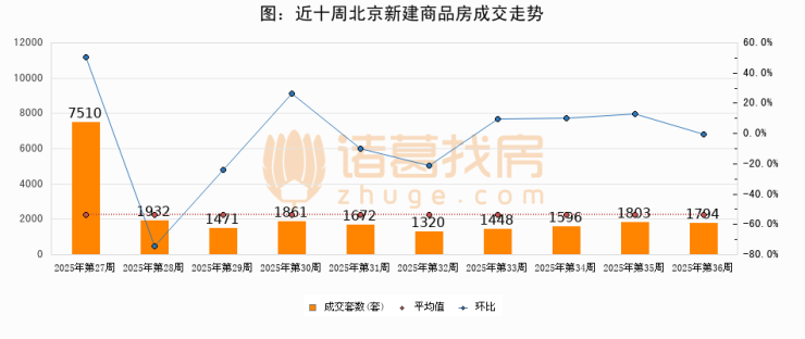 【北京成交周报】第36周新房成交1794套,二手房2964套,涨价房源477套