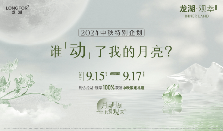 9.15-9.17,「超级月亮」空降龙湖·观萃营销中心,届时将有最撩人的月色、微醺的夜场派对、沉浸的茶事雅集,活动期间到访龙湖·观萃并发布抖音/小红书打卡内容,还将100%获赠中秋限定礼遇。即刻线上预约更可臻享中秋专属99折独家钜惠,在森意与繁花中感受自然,月下相逢,共赏观萃!