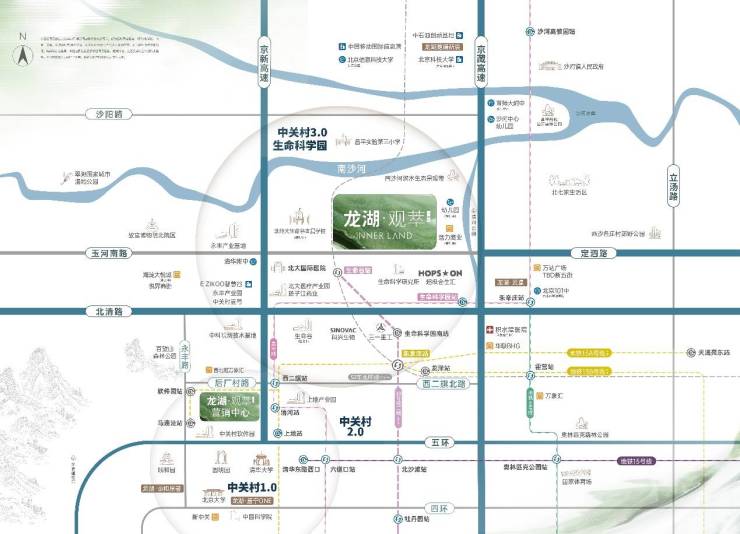 龙湖·观萃择址昌平区中关村生命科学园极核之上,西侧直线距离海淀核心区仅约1KM,极萃高效链接核心产业区的黄金三轨——社区班车无忧接驳地铁昌平线生命科学园站(自交付日起免费运行2年),南侧约800米即达地铁19号线北延线(规划中)及东北环线S2号线(建设中)交汇站-生命谷站;聚合九年一贯制北师大直属生命园学校(规划中)与社区高标准幼儿园(规划中)的全龄菁英教育,以及超极合生汇及北大国际医院等超能资源。