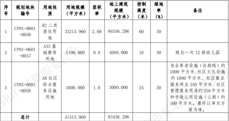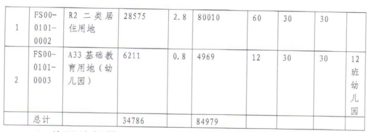 项目土地面积为34786平方米,0002住宅用地2.86万平方米,容积率2.8,控高60米;0003地块为配建的幼儿园。