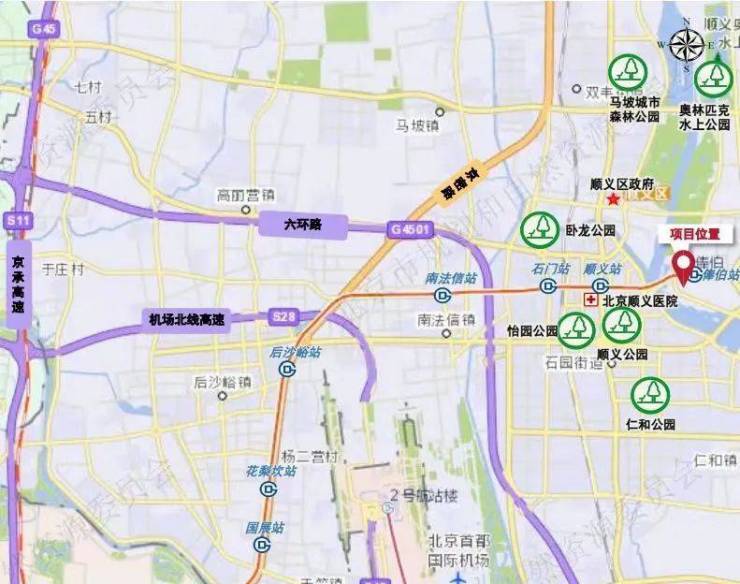 这块地位于顺义后沙峪镇,直线约1.3公里处是地铁15号线花梨坎站。