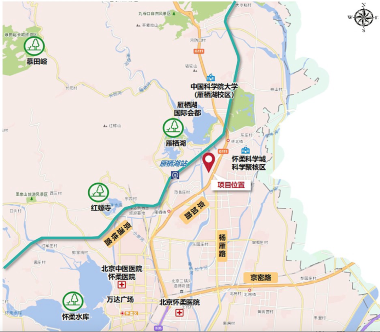 地块位于怀柔雁栖镇,北侧近雁栖湖景区,附近有京通铁路通过。