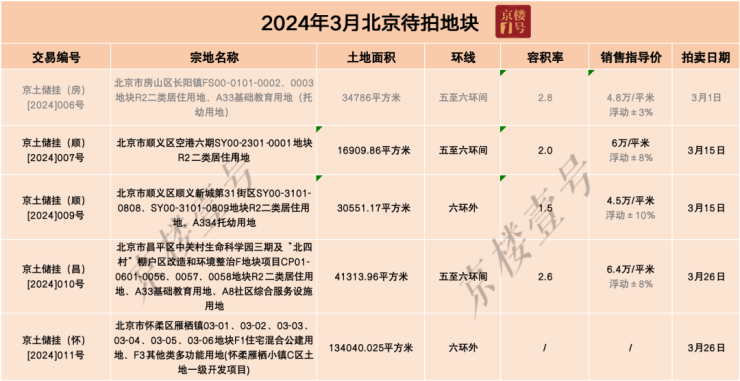 目前北京已正式上架5宗地块于近期竞拍,刚刚原定于今天竞拍的房山1宗地块延至4月底挂牌竞价。