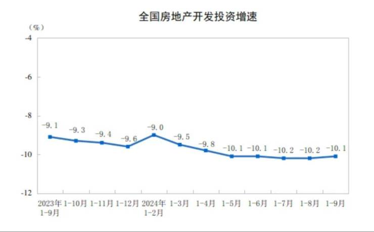 1-9月份,全国房地产开发投资78680亿元,同比下降10.1%;其中,住宅投资59701亿元,下降10.5%。