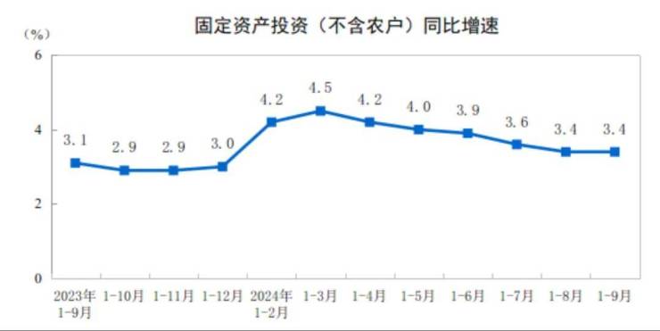 前三季度,全国固定资产投资(不含农户)378978亿元,同比增长3.4%;扣除房地产开发投资,全国固定资产投资增长7.7%。