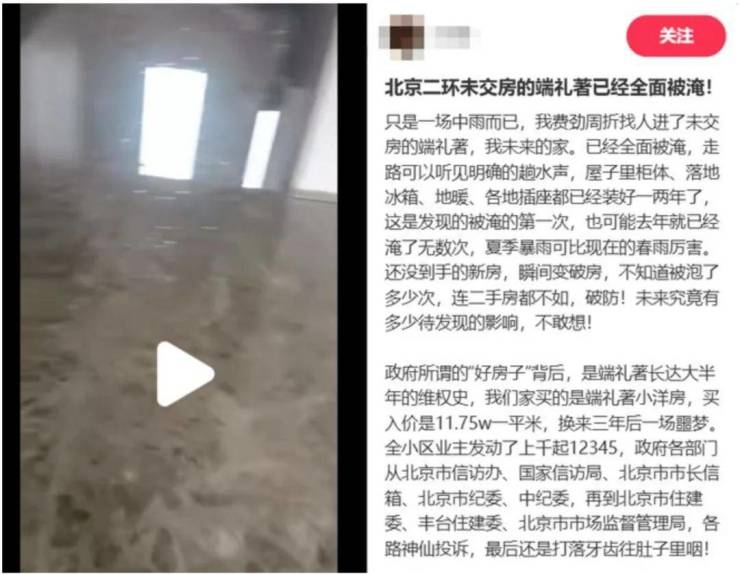 从昌平到海淀,从顺义到大兴,雨水正以最公平的方式揭露着新房质量的参差。