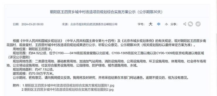 前几天规资委公示了《朝阳区王四营乡城中村改造项目规划综合实施方案》。