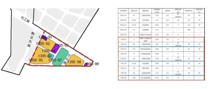 南侧的1305街区地块,包含3块住宅用地、1块托幼用地,还有防护绿地和消防用地,其中住宅容积率2.5。