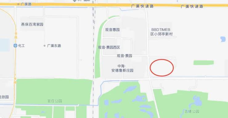 地块组团西侧是中海安德鲁斯庄园,北侧有古塔公园、官庄公园,周边最近的地铁站7号线化工站在2公里以上了。目前附近二手房挂牌价在4.5-5.5万/平。