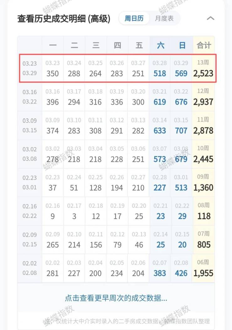 周六成交518套,周日成交569套。单周成交2523套,与此前一周相比,下滑幅度显著。