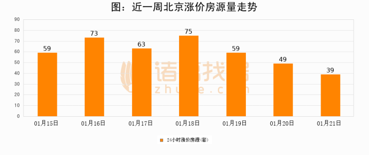 根据诸葛找房数据显示,北京24小时涨价房源量为39套,较01月20日减少10套,环比下降20.4%。与此同时,涨价房源占比小幅回落,对于购房者来说是一个入市窗口期,购房者可抓住时机入市。