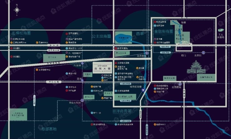项目位于北京市丰台区白盆窑樊羊路与六圈南路交汇处,虽然目前周边很多地方还处于在开发阶段。但项目距离总部基地、万达广场都很近,大约2公里左右,出行也比较方便,对于在丰台上班的人还是不错的选择。