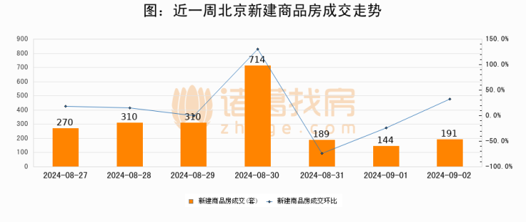 【北京成交日报】09月02日新房成交191套、二手房511套;涨价房源104套