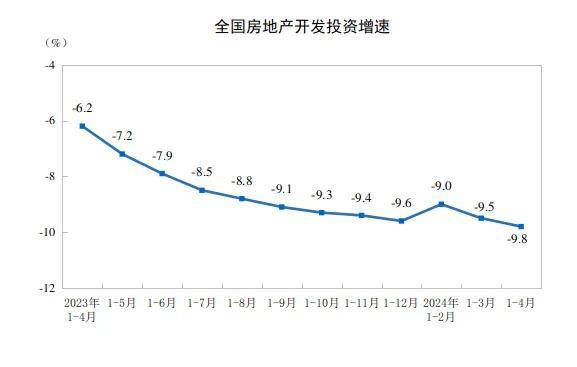 1-4月份全国房地产开发投资30928亿元,同比下降9.8%;其中,住宅投资23392亿元,下降10.5%。