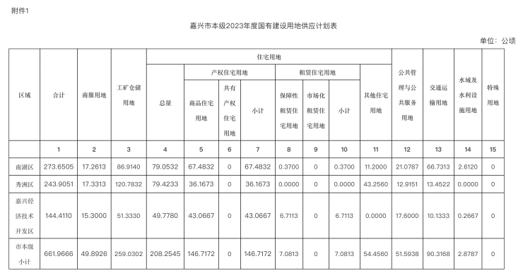 3月6日,浙江省嘉兴市发布《嘉兴市本级2023年度国有建设用地供应计划》。