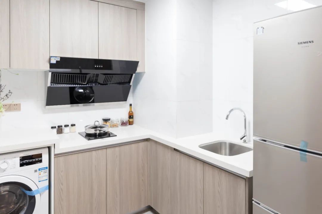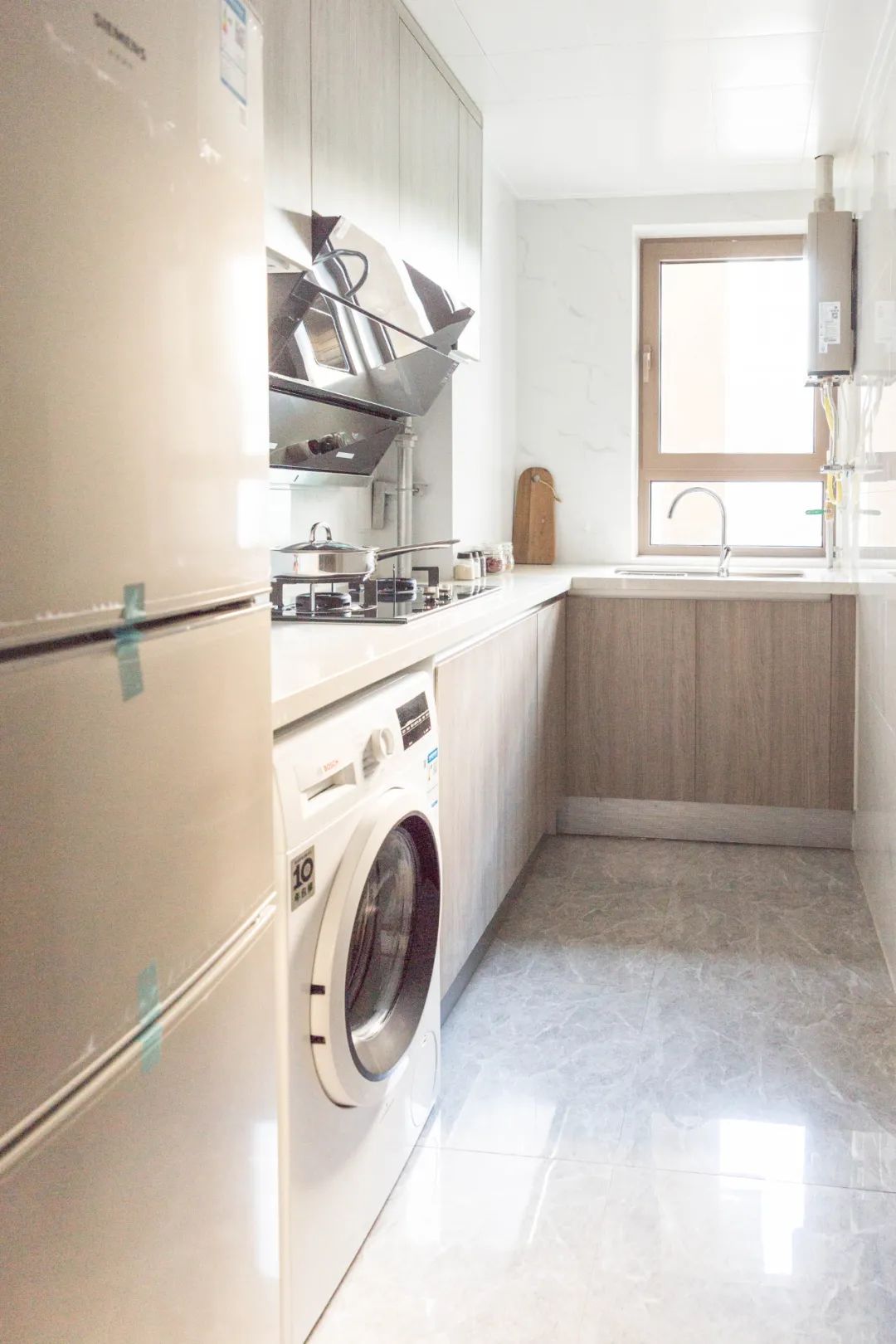 相比较而言,这种户型的厨房的空间更大,一起做饭、洗菜也不觉得拥挤了。