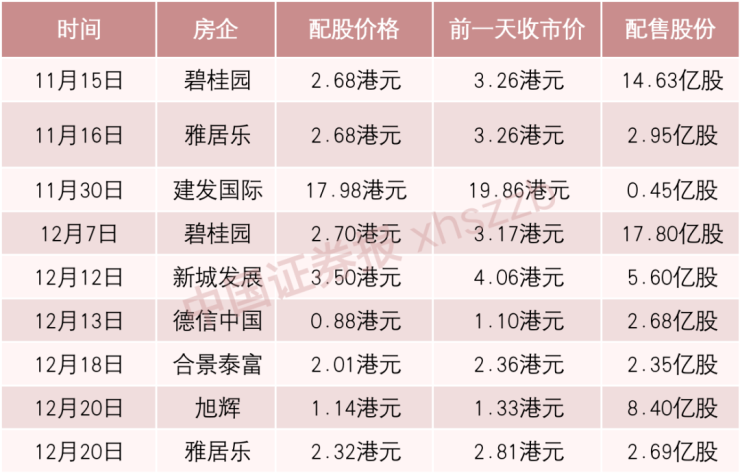 值得注意的是,房企抛出的配股方案多数属于折价配股。