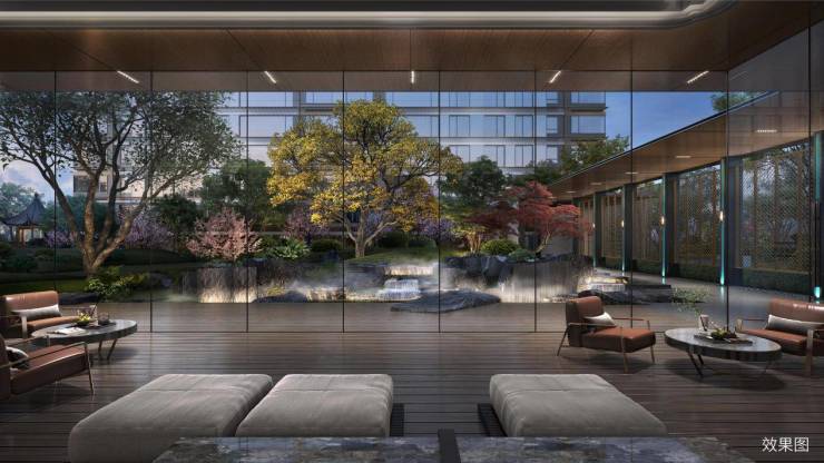 步入下沉会所「栖贤」,轩窗对望,一方水景盎然呈现。