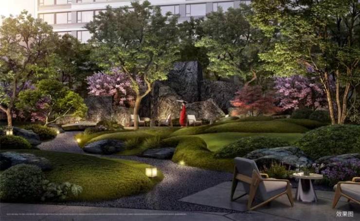 沿着曲折蜿蜒的小径漫步其中,藏而不露的精巧布局,深有“溯溪寻幽”的隐世仙境之感。直露中有迂回,舒缓处有起伏。京能西贤府巧借高低落差的府园设计,打造开放式花园,或品茶论道,或静思冥想,让心灵得以全然放松。