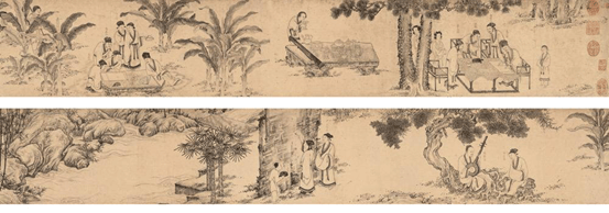 如果你钟情于宋代人文,那一定会知道李公麟的《西园雅集图》。卷中以写实的方式描绘了李公麟与苏东坡、黄庭坚、蔡襄、秦观等众多文人雅士,在驸马都尉王诜府中作客聚会的情景。画中人或挥毫用墨、或吟诗赋词、或扶琴唱和、或打坐问禅,且看文人雅士风云际会。