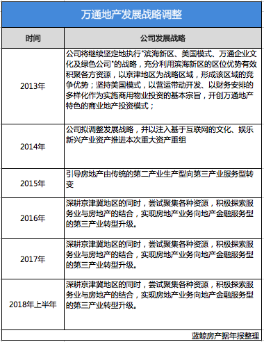 在此艰难时刻,万通地产仍没有剥离地产业务的打算。据蓝鲸房产梳理发现,即便经历了业绩下滑、股权纷争,“地产”二字始终在万通地产的发展策略中。2015年,嘉华控股为万通地产制定了“由传统的第二产业生产型向第三产业服务型转变”的策略;2016年进一步细化为“深耕京津冀地区,尝试聚集各种资源,积极探索服务业与房地产的结合,实现房地产业务向地产金融服务型的第三产业转型升级。”; 2017年6月,万通地产从中融鼎新手中全资收购了中融国富,为万通地产的多元化版图新增了资产管理业务。