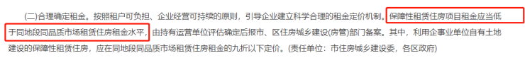并且利用企事业单位自有土地建设的保障性租赁房,(哥们猜测可能是员工住房?)租金应按照同地段同品质市场租金的9折以下定价。