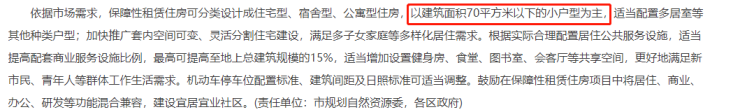 关于住宅标准,《方案》中也明确指出分为住宅型、宿舍型、公寓型住房,以70平米以下小户型为主,并且适当配置多居室。