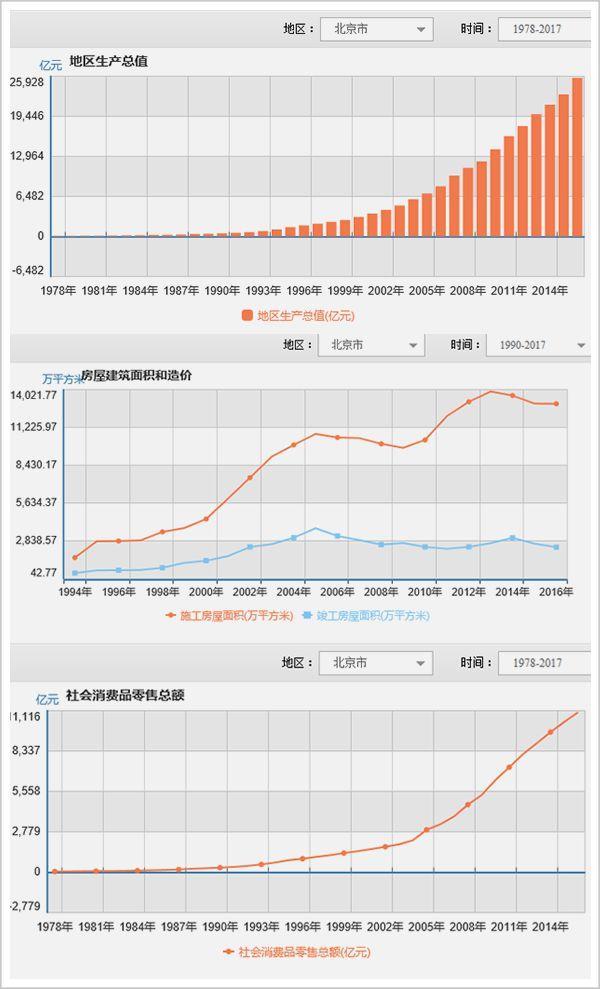 几乎与此同时,北京市GDP、固定资产投资、房屋建筑面积、社会消费零售总额等几个关键指标,都迎来了一个高速增长期。