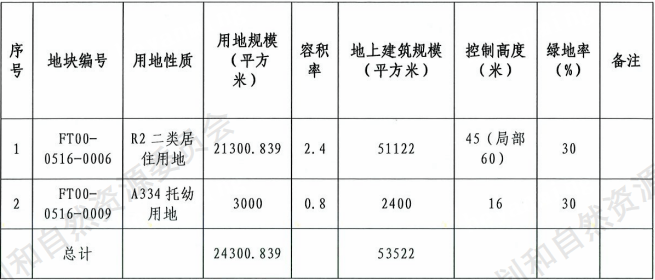 新地块用地面积约2.43万平米,建筑控制规模约5.35万平米,容积率为2.4;配建一个幼儿园。