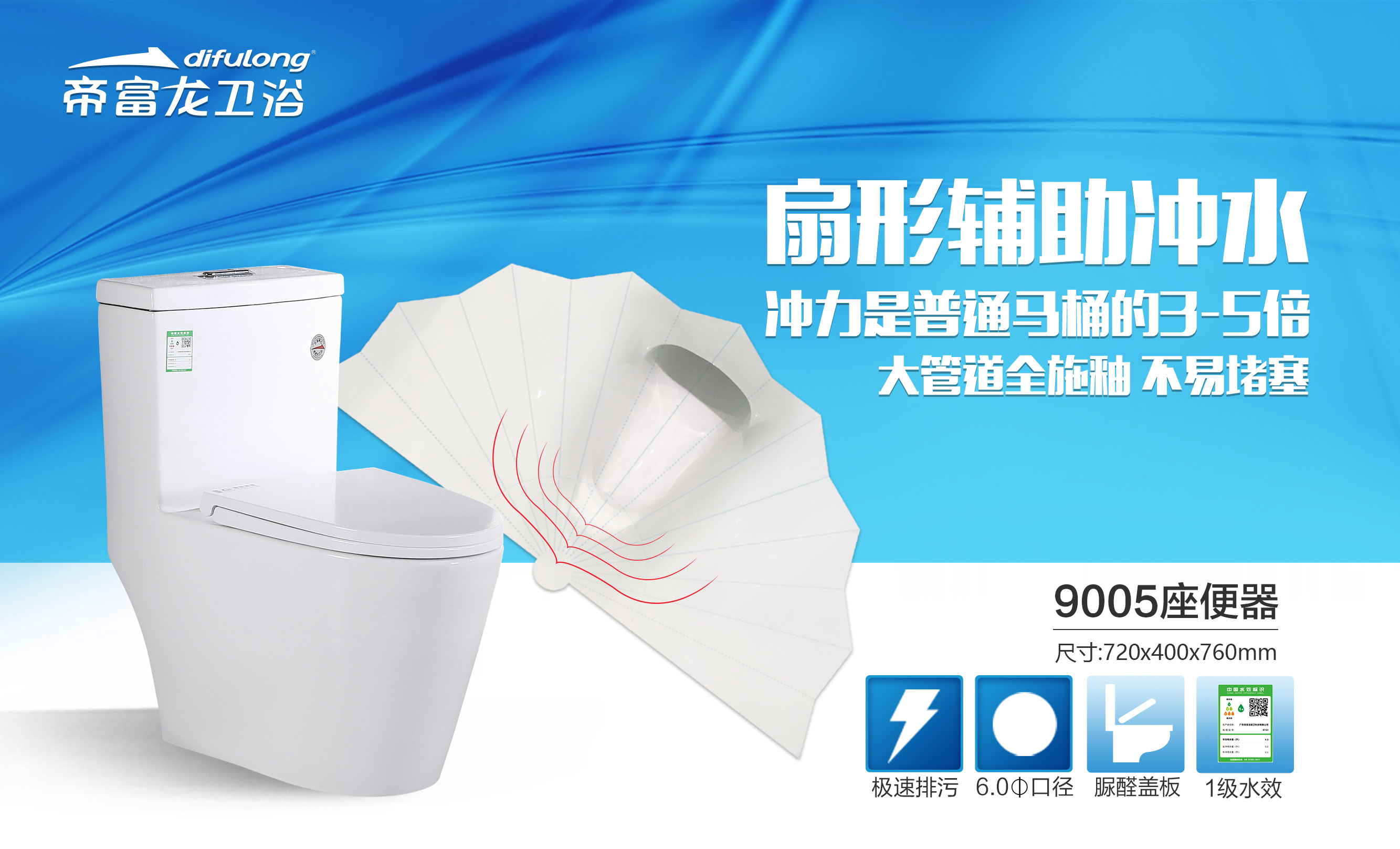 在管道设计方面,帝富龙卫浴充分考虑其科学性和用水量,设计了直径为6cm的管道,既保证污物可以顺畅排出,又使产品能达到一级水效;在原有基础上采用扇形管道口辅助冲水,冲力是普通马桶的3-5倍,高效又节水,做到用水量和冲净效果的双重优化。