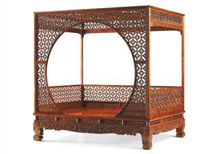 伍炳亮设计制作的黄花梨仿古家具,既有明清家具的韵味,又符合当下的审美习惯,兼备形神的同时还具有实用功能。传统家具的器形中,不乏架子床的模板,但绝大多数的工匠都是依样画葫芦的复制,在制作时并没有真正从审美的内涵上去理解,而伍炳亮在红木家具行业中很难得具备重新演绎的能力,以深刻的理解与高度的审美为基石,刻画心中造型的蓝本。此次获奖的作品“明式海南黄花梨大号月洞门架子床”就是其造型设计能力与审美眼光的较好说明。