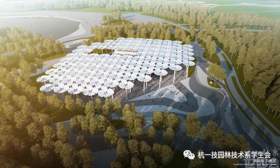 花伞设计不只美观,还有强大的功能和独特的匠心。考虑到世园会举办时正值北京炎热暴晒的夏季,为了避免游客在进入场馆时因排队过久而出现中暑的状况,建筑师在若干朵“花伞”下留出了开放的公共空间,像一个城市遮阳伞,为人们提供一个舒适的驻足停留、休憩区域。
