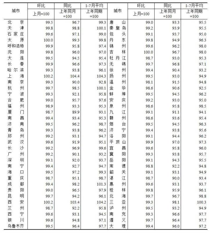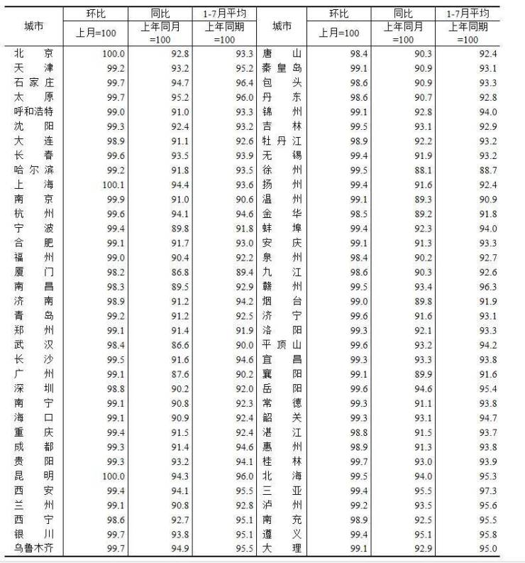 下半年首月,各大城市的新房、二手房价格如何变化?8月15日,国家统计局发布2024年7月份70个大中城市商品住宅销售价格变动情况。