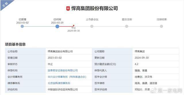 据深交所官网披露,日前,因悍高集团股份有限公司(以下简称“悍高集团”)IPO申请文件中记录的财务资料已过有效期,需要补充提交,其更新上市审核申请流程,现在审核状态变更为“中止”。