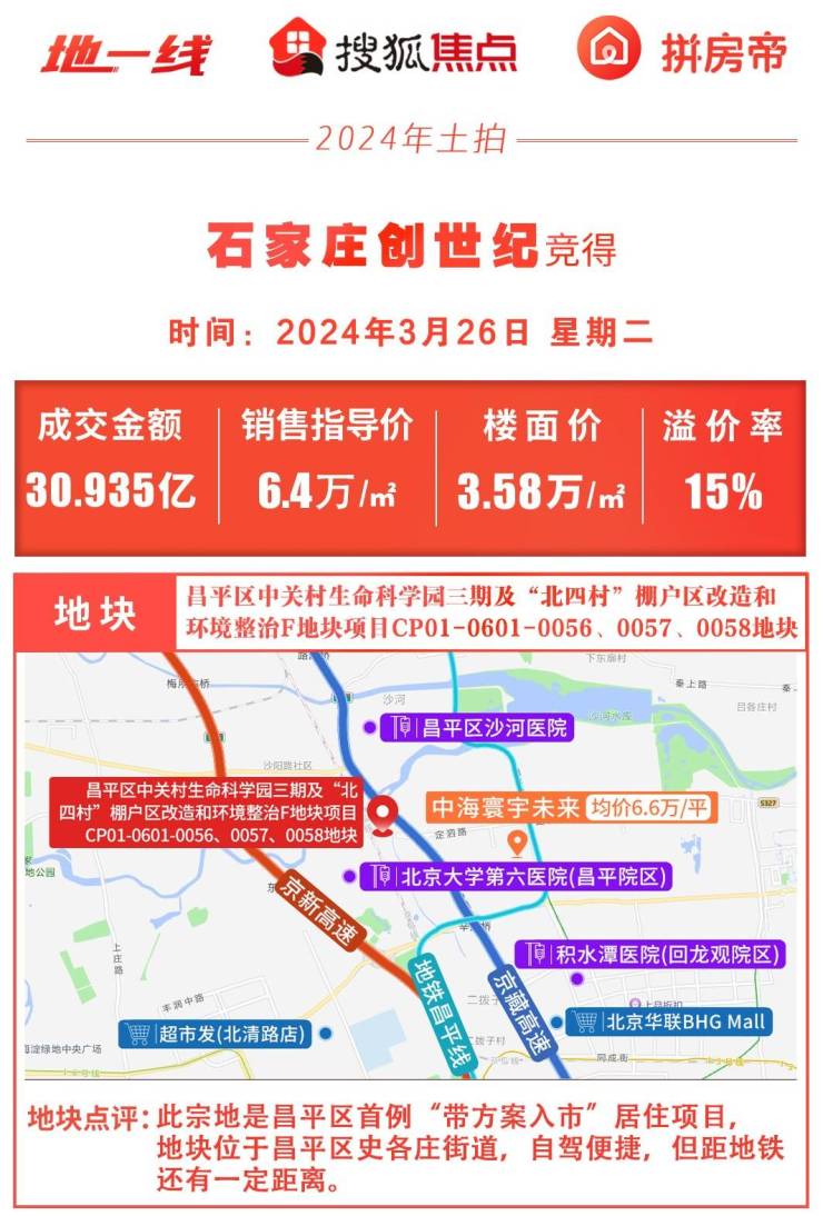 值得注意的是,除了斩获昌平区中关村生命科学园三期地块的石家庄创世纪为民企外,其余18宗宅地均由国企、央企拿下。