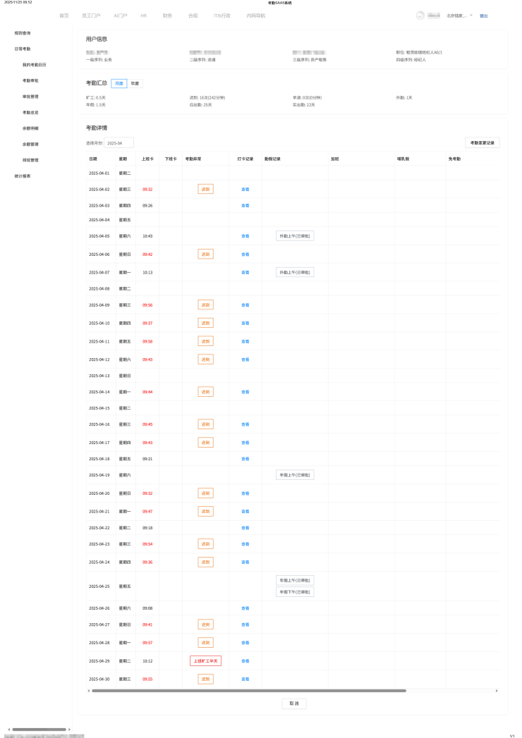 据了解,该员工于2024年5月15日入职链家宣武门店,担任租赁助理经纪人。入职以来,其业绩表现一直不尽如人意。据其门店负责人反映,自2025年3月起,该员工频繁出现考勤异常情况。