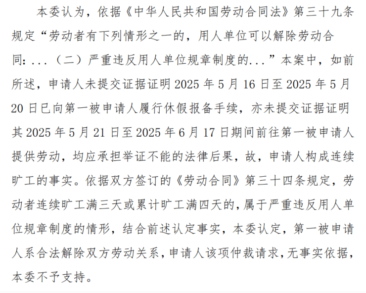 辞退真相:单月累计旷工超15天,仲裁认定合法解除