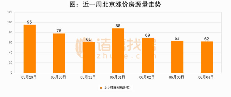根据诸葛找房数据显示,北京24小时涨价房源量为62套,较06月03日减少1套,环比下降1.6%。与此同时,涨价房源占比小幅回落,对于购房者来说是一个入市窗口期,购房者可抓住时机入市。
