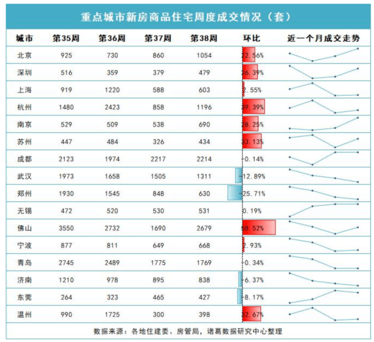 9月1号周五,政策释放当周刚好是第36周(8.28-9.3),9.4-9.10是第37周,上周也就是9.11-9.17是第38周。