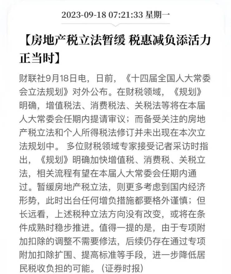 昨天,传了很久的房地产税又有了新的消息,立法暂缓,近五年可能又没戏了。