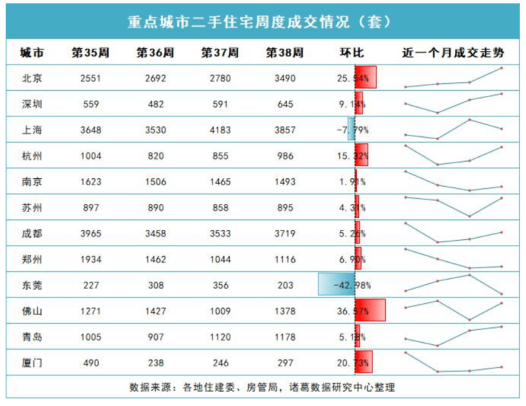 第37周,北京二手房成交2780套;第36周,北京二手房成交2692套。