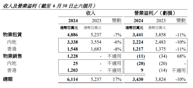 卖房收入增长,内地录得营业亏损